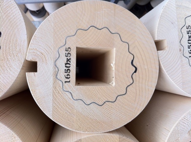 Holzkerne (auch als Wickelhülsen, Holzrollen oder Gewebebäume bekannt) haben ein durchgehendes quadratisches Vierkantloch zur Aufnahme in den Wickelmaschinen. Sie werden je nach Durchmesser in mehreren Schichten verleimt. Hergestellt werden die Kerne aus bei uns beheimatetem Fichtenholz. Eine Hitzebehandlung gemäß dem Standard ISPM Nr. 15 ist möglich.